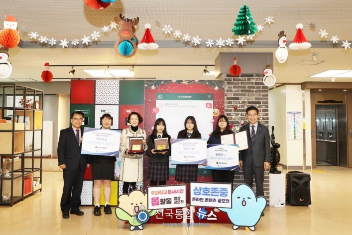 전국통합뉴스 최상호 기자 | 충청북도교육청(교육감 윤건영)은 21일(목)부터 22일(금)까지 '틈새시간 몸활동 영상 및 상호존중 온라인 콘텐츠 공모전'의 16점의 수상작에 대해 도교육청 중앙현관에서 시상식 및 전시회를 개최하고 있다.