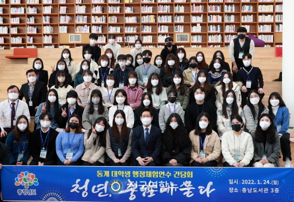 양 지사는 24일 충남도서관에서 동계 행정체험연수에 참여 중인 대학생 50여 명과 만나 청년정책 관련 아이디어를 듣고, 고민상담 등 소통의 시간을 가졌다.