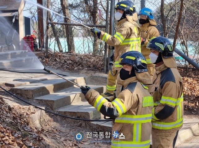 전국통합뉴스 이용석 기자 | 대전시 소방본부는 봄철 대형 산불을 대비하여 지난 17일부터 25일까지 9일 동안 식장산, 계족산 등 주요 산을 중심으로 대형 산불에 대비한 산불진화 특별훈련을 실시하고 각 소방서의 산불진화 장비 및 대응대책을 점검한다고 23일 밝혔다.