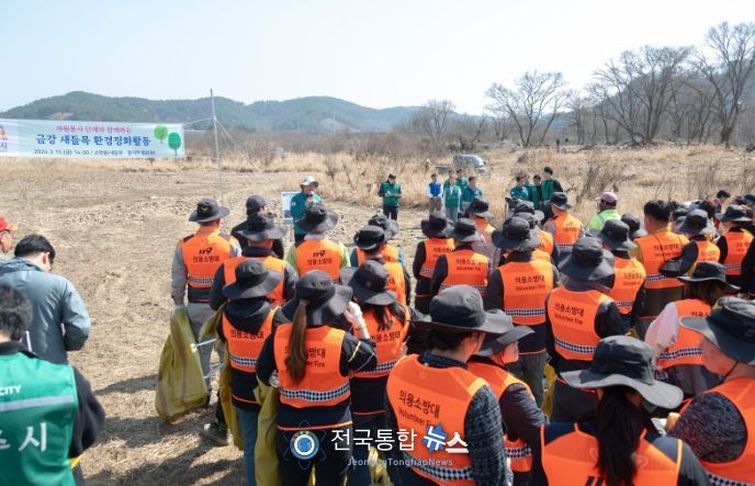 이들은 금강 새들목 유휴부지 등을 돌며 지난해 집중호우 당시 떠밀려 온 부유물(쓰레기)을 수거하는 등 정화 활동을 펼쳤다.