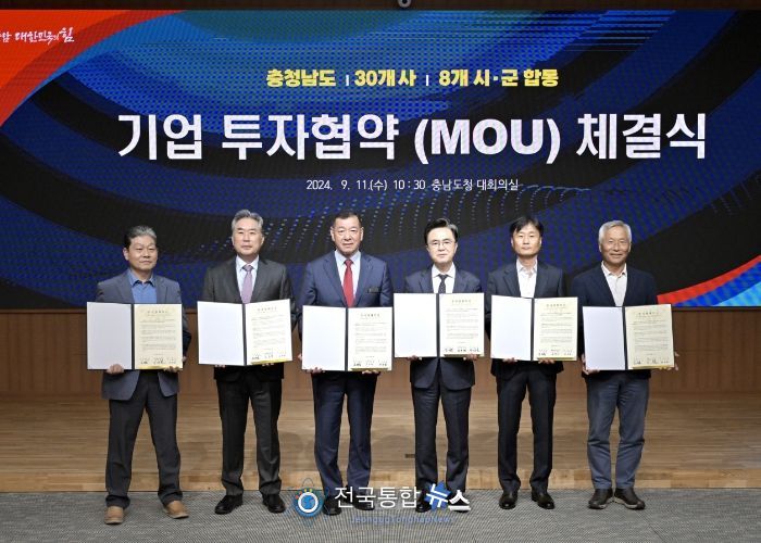 공주시는 11일 충남도청 대회의실에서 김태흠 도지사와 최원철 시장 등이 참석한 가운데 공주, 천안, 아산 등 8개 지자체와 30개 기업이 합동 투자협약을 체결했다.