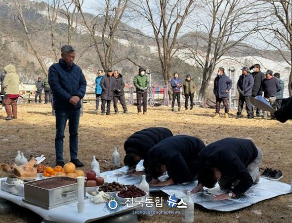 매년 대왕산 정상에서 거행하던 시산제는 올해 최근 내린 많은 눈으로 인해 주민 안전을 고려하여 지난 8일 학산면사무소 옆 체육공원에서 진행했다.