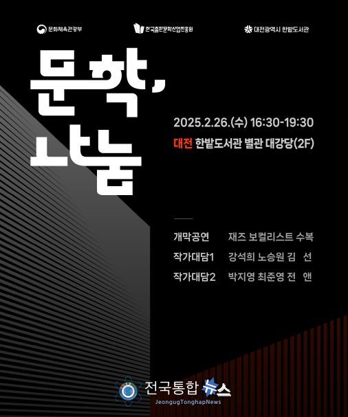 전국통합뉴스 이종구 기자 | 대전시 한밭도서관은 오는 26일 오후 4시 30분부터 3시간 동안 별관 2층 강당에서 “문학나눔 작가지원 행사”를 개최한다.