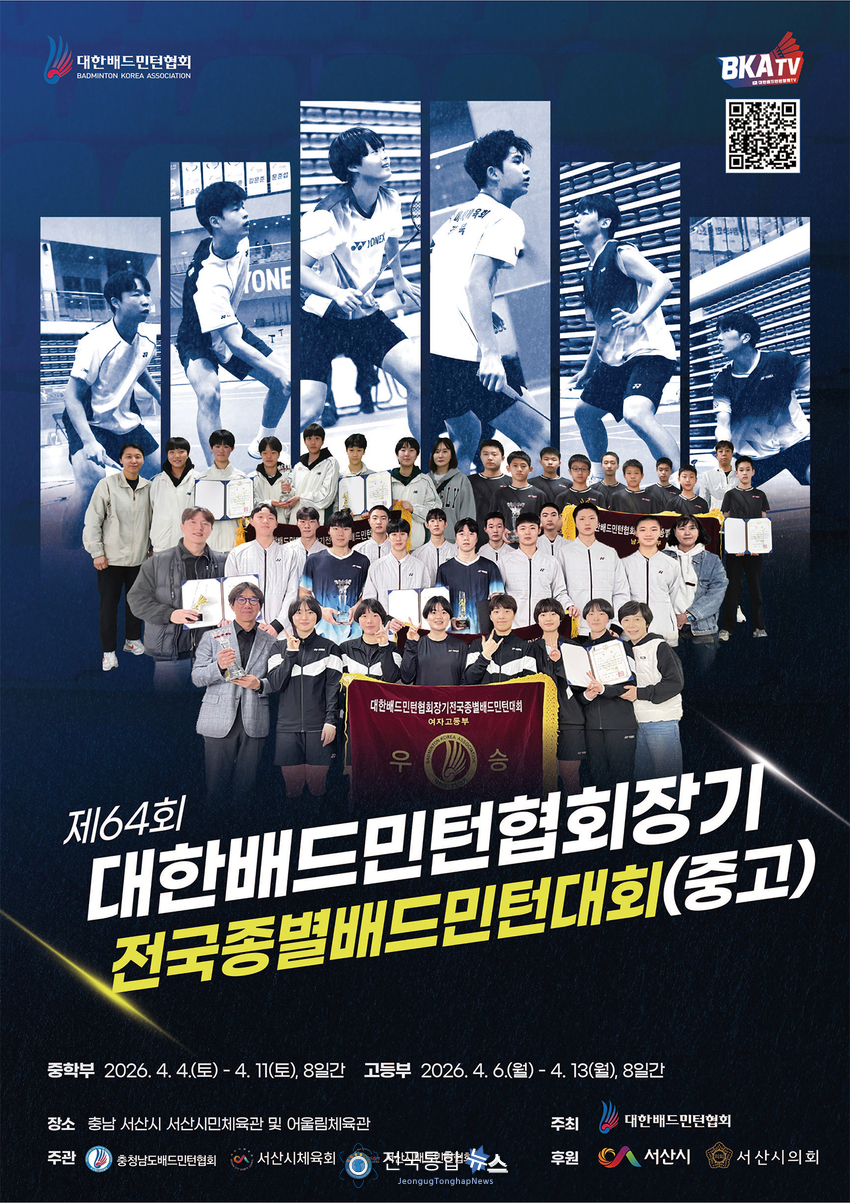 전국통합뉴스 이인복 기자 | 충남 서산시에서 중·고등부 배드민턴 선수들의 자웅을 가리는 무대가 펼쳐진다.