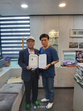 왼쪽부터 조판석 한국기자연합유통협회 회장, 전영준 휴림바이오 회장 전국통합뉴스 이경수 기자 | 한국기자연합유통협회(회장 조판석)와 휴림바이오 (회장 전영준)는 23일 대전시 대전 중구 중앙로 28 b1 휴림바이오 사무실에서 상생 발전을 위한 업무 협약식을 가졌다. 이날 업무 협약으로 양 사는 상호 긴밀한 협력 체계를 구축하고 정보를 공유하며, 상호 복지 증진과 공동의 발전을 도모하고 올바른 유통구조 개선을 위해 신뢰를 바탕으로 업무를 협력 하게 된다. 조판석 회장은 "이번 협약으로 휴림바이오에서 연구 개발 생산한 제품을 홍보하는 등 양 사가 서로 상생할 수 있는 길을 모색할 계획"이라고 밝혔다. 전영준 회장은 "호흡출납을 강조하며 건강은 건강할 때 지켜야 하며 90% 이상이 장 건강에 있다"며 "그래서 자사 제품에 정성을 담았으며 체험을 통해 가족건강 증진에 크게 기여하게 될 것"이라고 밝혔다.